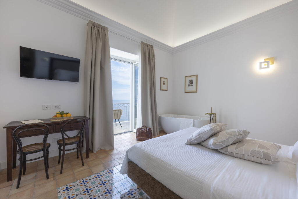 Dimora de Feo is an ancient historic manor house from the 1700s, surrounded by vineyards with a splendid sea view where you can still see the period design in the furnishings and floors. Recently renovated, it offers 4 different apartments with all the comforts of a modern structure while maintaining its original atmosphere.